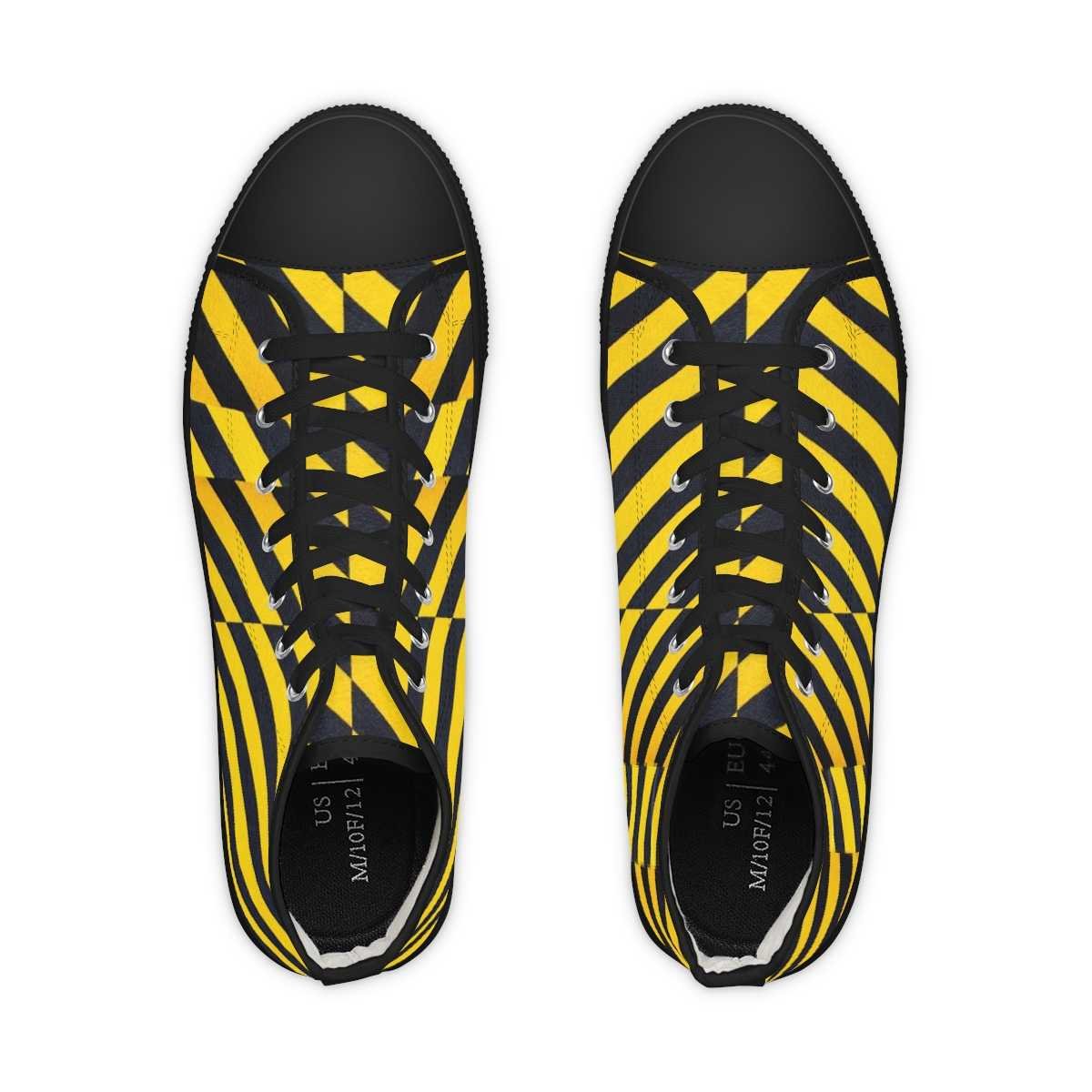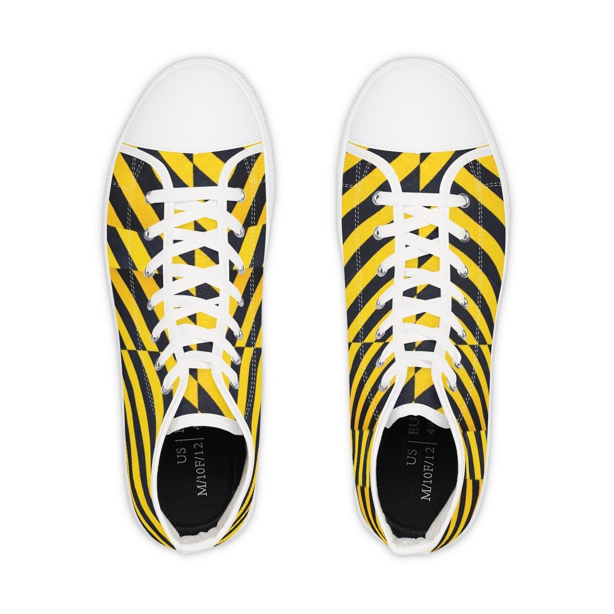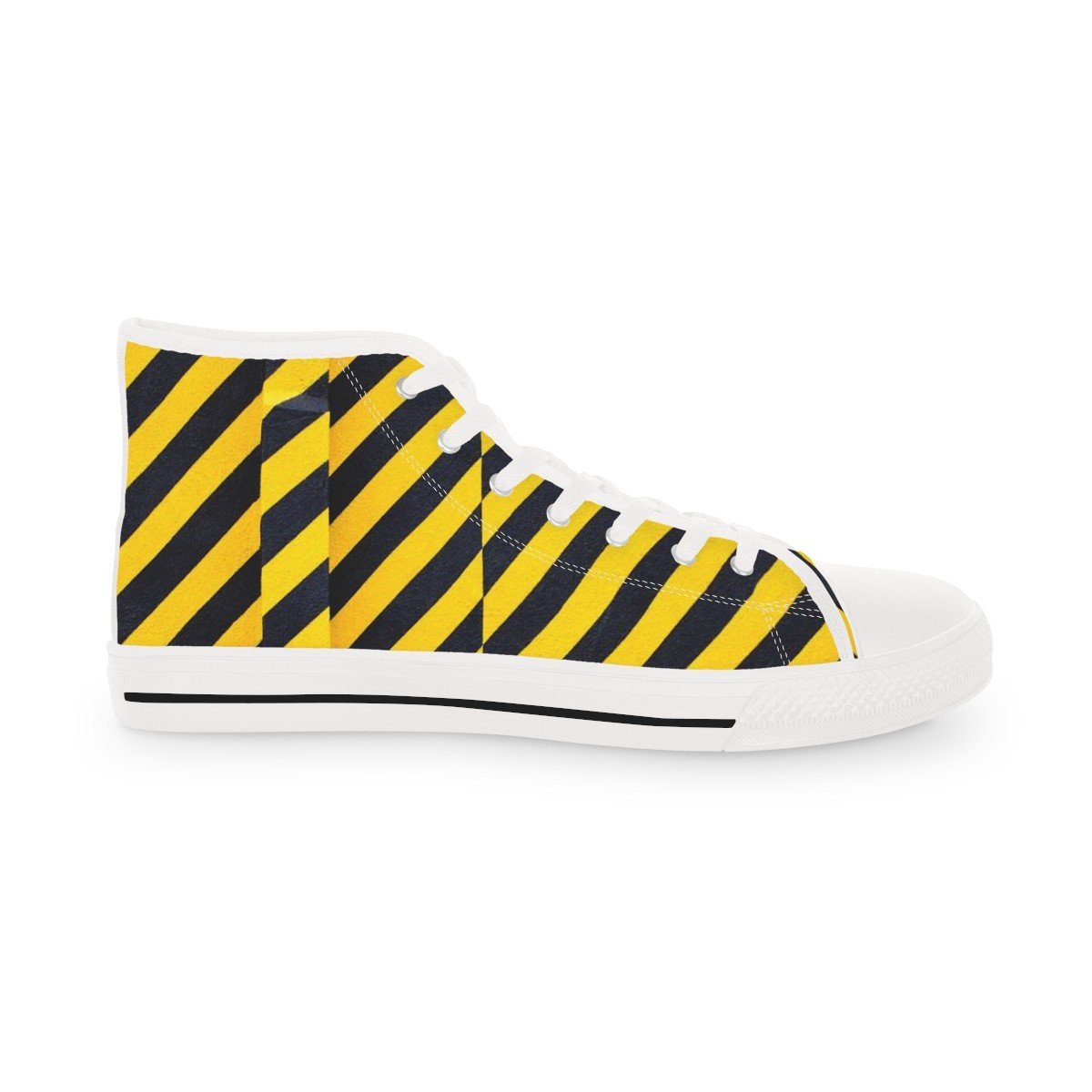 Made with breathable polyester canvas and featuring hi-poly deodorant memory foam insoles, these high top sneakers for men bear all the marks of an awesome shoe. Choose between black or white sole and laces, and enjoy the silver metal eyelets along with the lace-up closure. Add your designs and bring a bespoke staple to life.