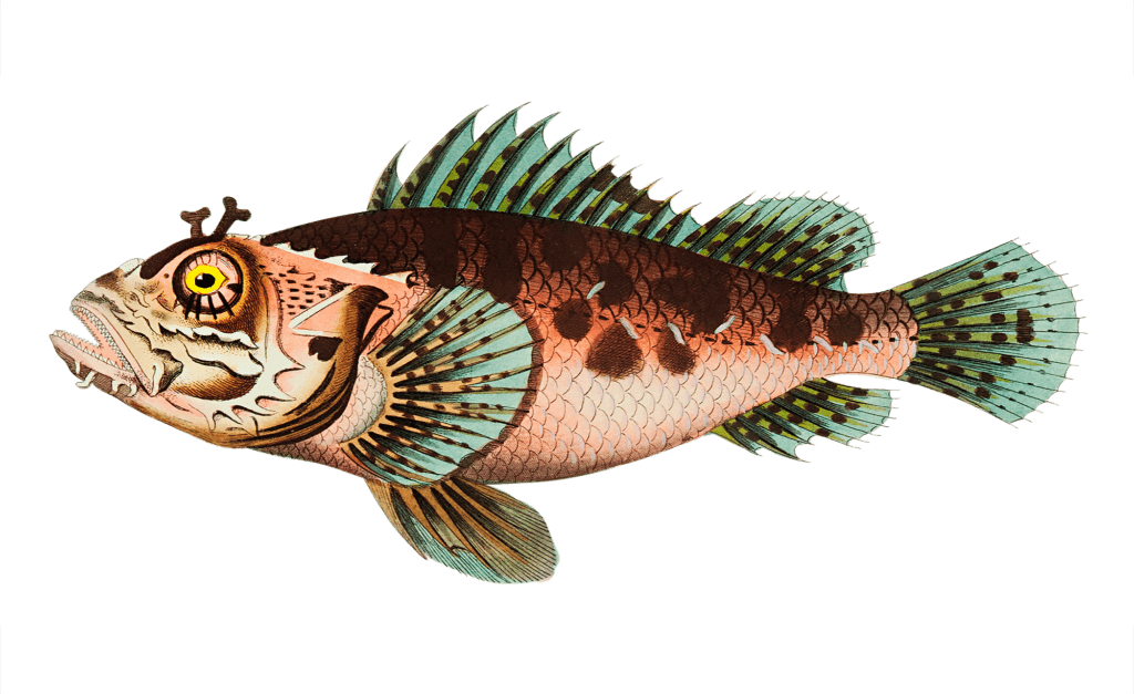 Hand-colored copperplate engraving of the Black scorpionfish (Scorpaena porcus).