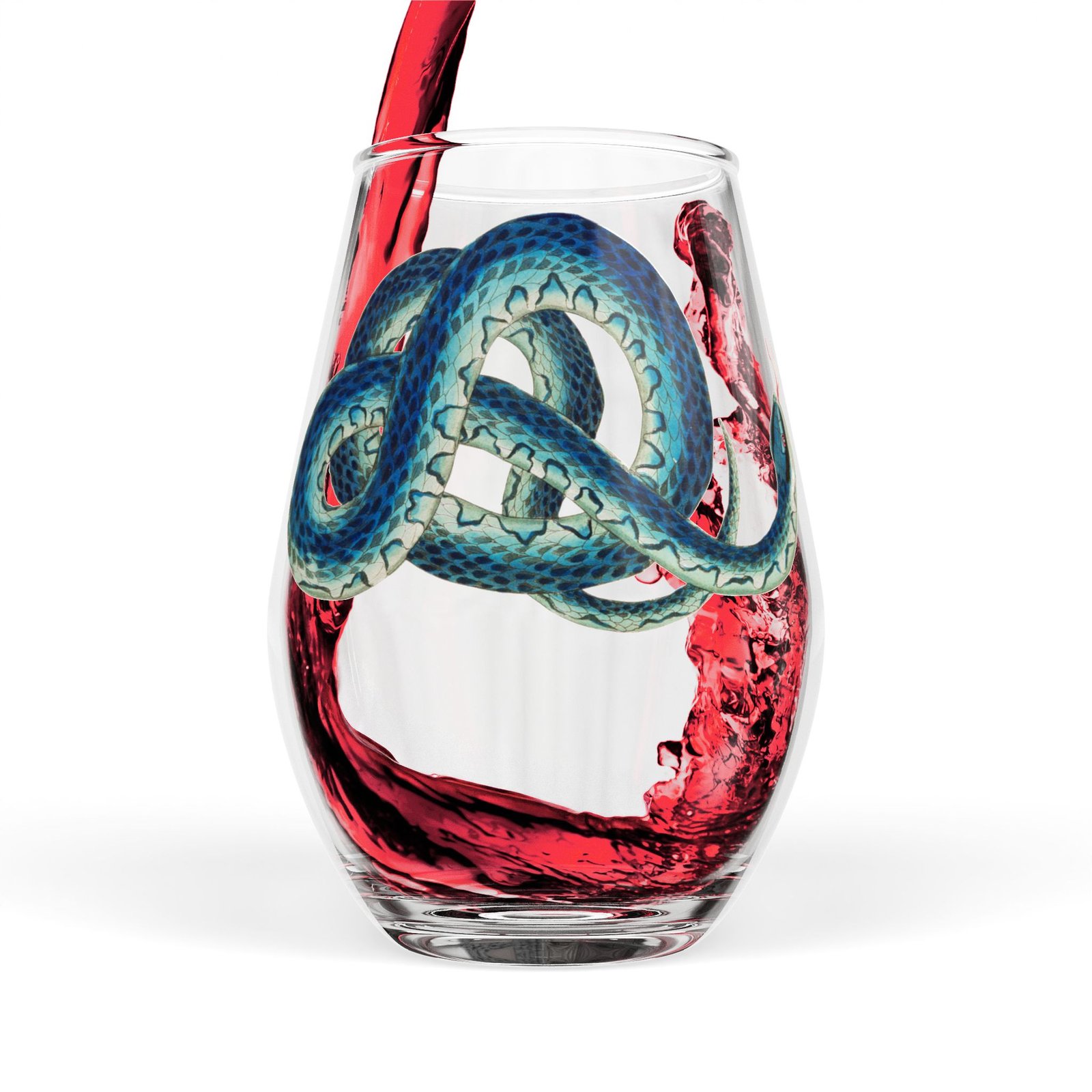 Blue Serpent Stemless Wine Glass — 11.75 oz Artistic Snake Design