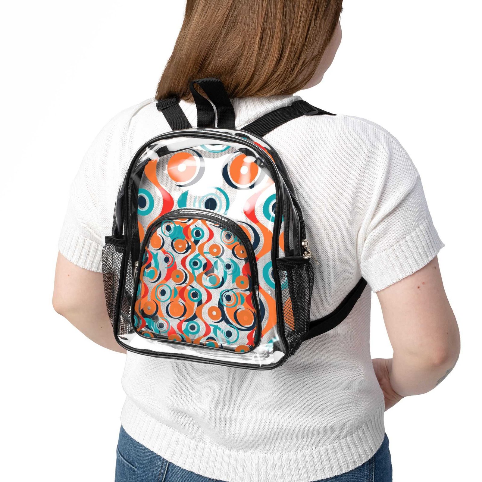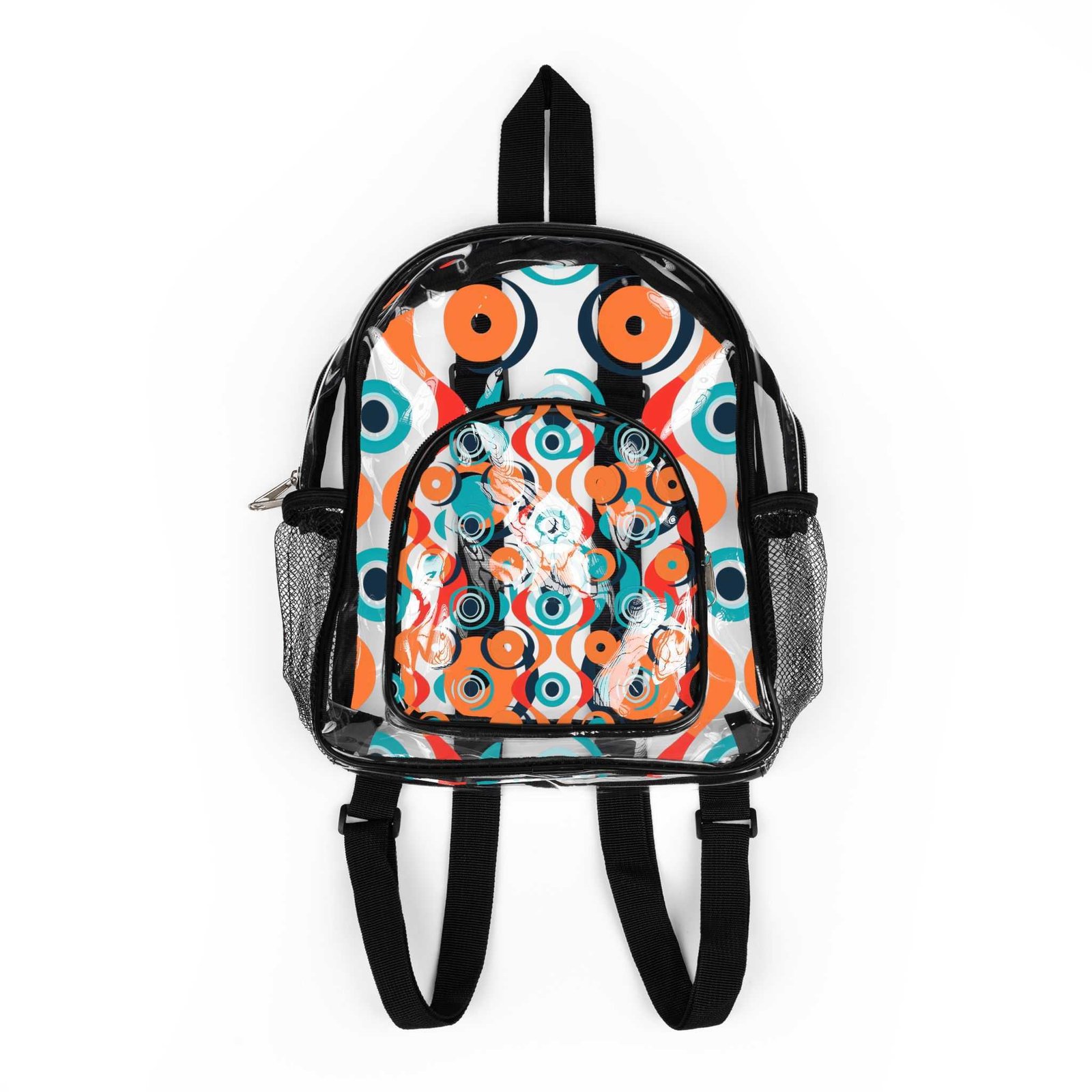Introducing this stylish Clear Stadium Backpack, perfect for the modern adventurer! Made from durable, water-resistant transparent PVC, this backpack combines functionality with a chic, contemporary look. It seamlessly fits into your lifestyle, whether you’re heading to a concert, sporting event, or festival. Its medium size (23.5cm x 9.5cm x 30cm) makes it the ideal companion for any outing. With a large interior capacity and convenient zipper closure, it keeps your essentials secure and easily accessible. This backpack is also fun and fashionable, featuring unique prints on both the front and back, adding a touch of personality to your outfit. This product is great for adults who appreciate style and durability and is an excellent choice for gifts during the holiday season, back-to-school, or any celebration where a clear bag is required!