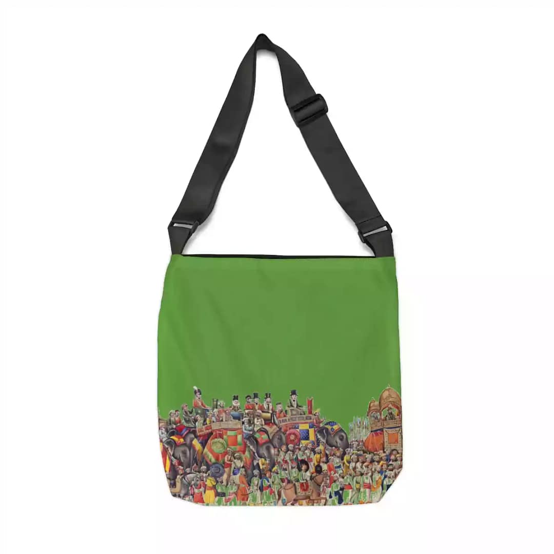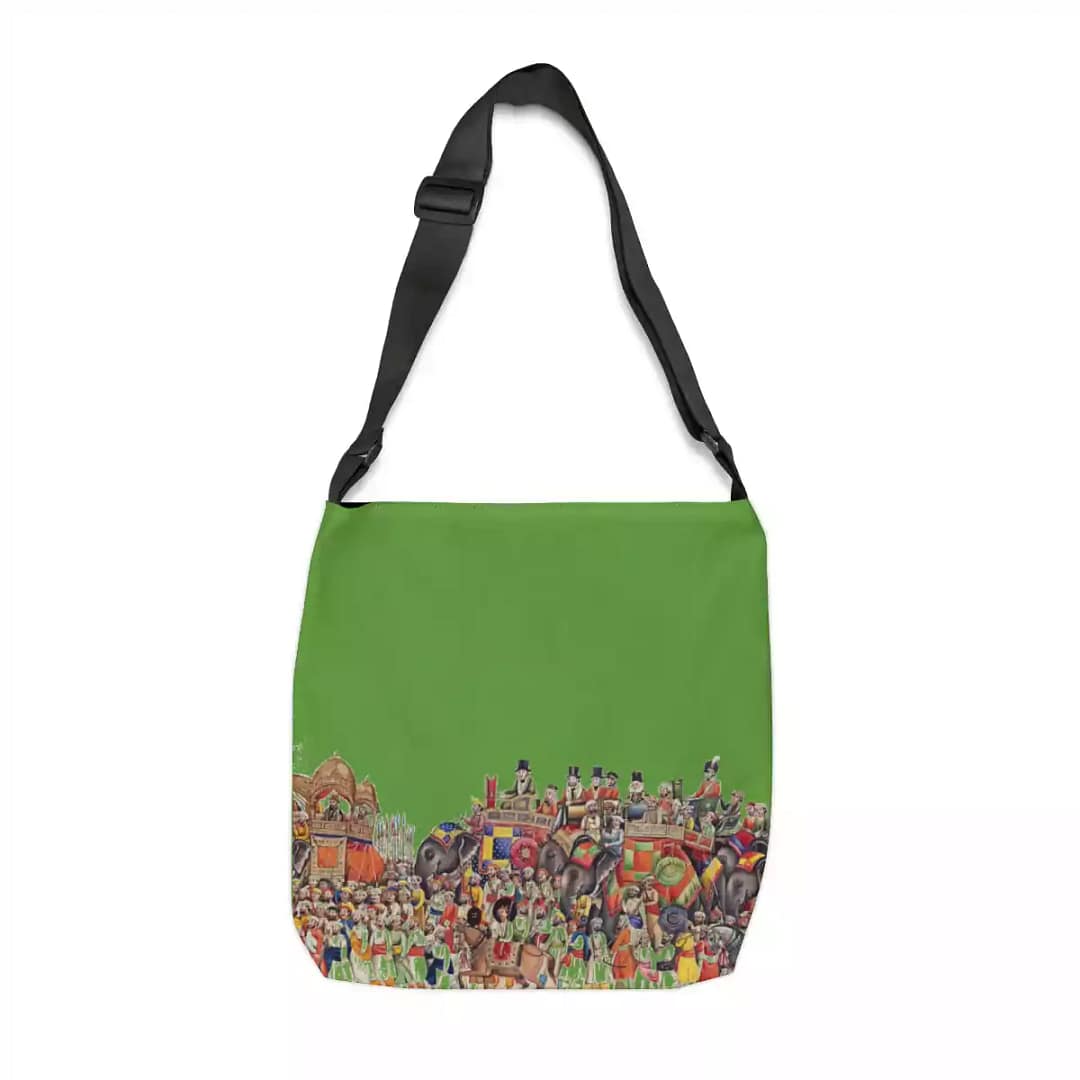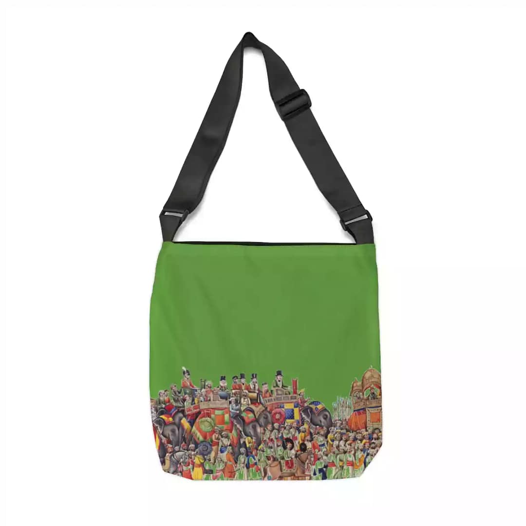 Panorama of a durbar procession of Akbar II, Emperor of Delhi, 1806-37, probably on the occasion of the Id or after Ramadan. The Emperor is followed by his sons, by the British Resident, high officials both Indian and British, as well as by troops. The royal procession includes elephants carrying the royal insignia (sun, umbrella, fish standards, etc.), camels, horses, gun-carriages, palanquins, and closed bullock-carriages for the ladies. Water-colour; 6.25 by 94 ins., by a Delhi artist, c.1815″
