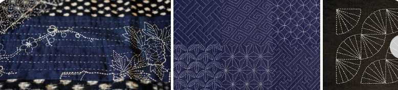 Sashiko is a traditional Japanese form of functional embroidery and decorative reinforcement, historically used to strengthen clothing and provide insulation using running stitches on indigo fabric. It features geometric patterns (moyoashi) or, with one-stitch techniques (hitomizashi), created with specialized thick thread and long needles.