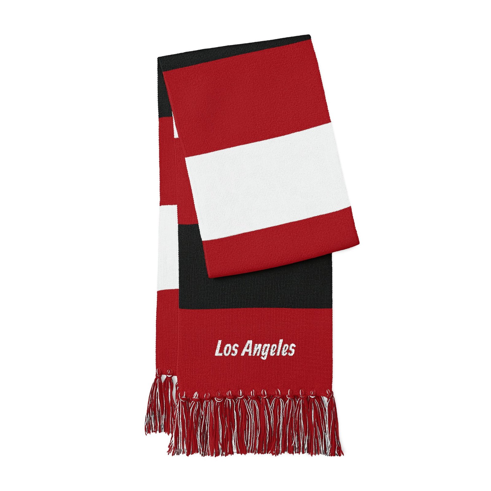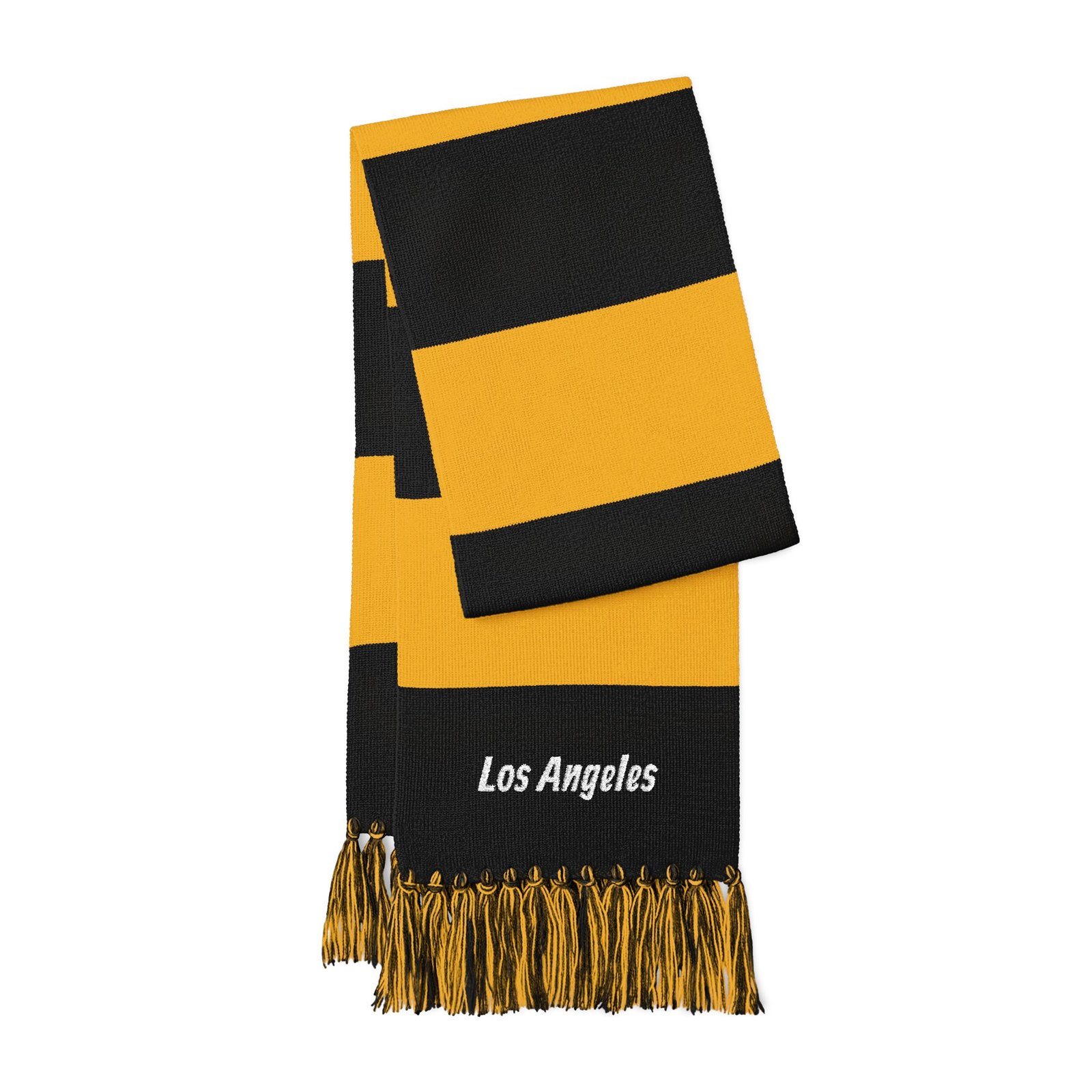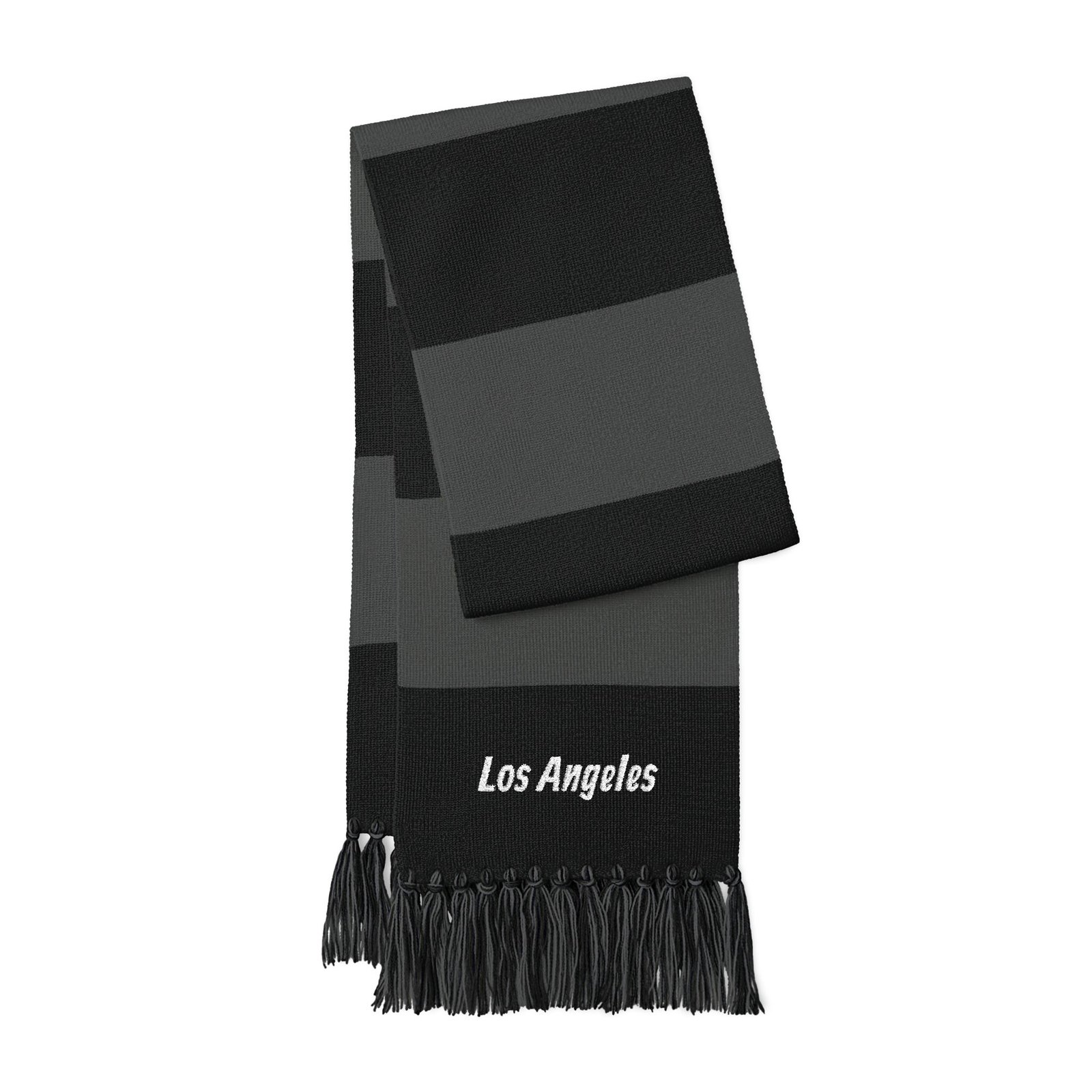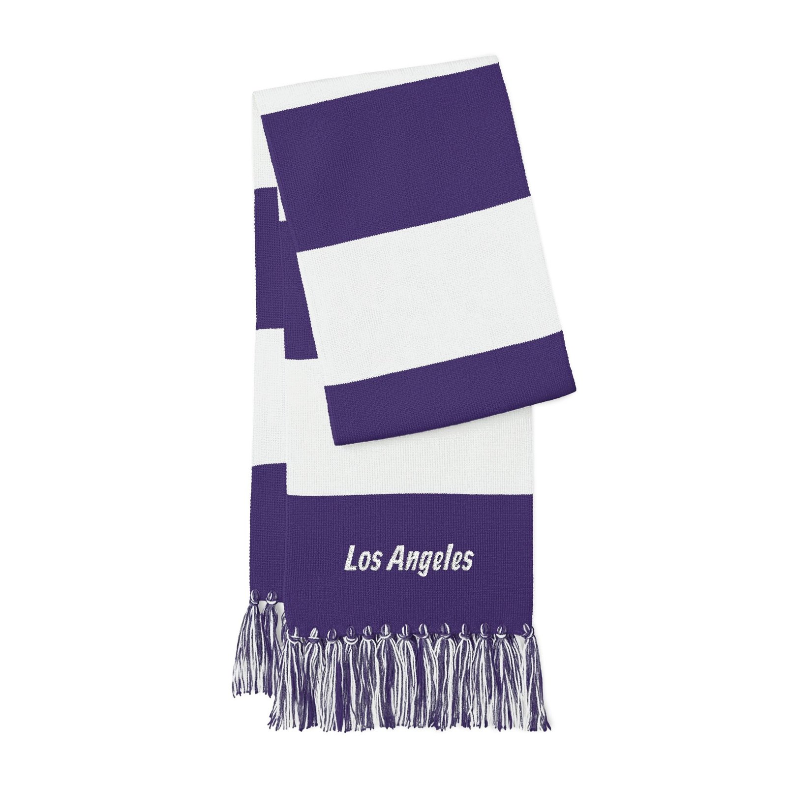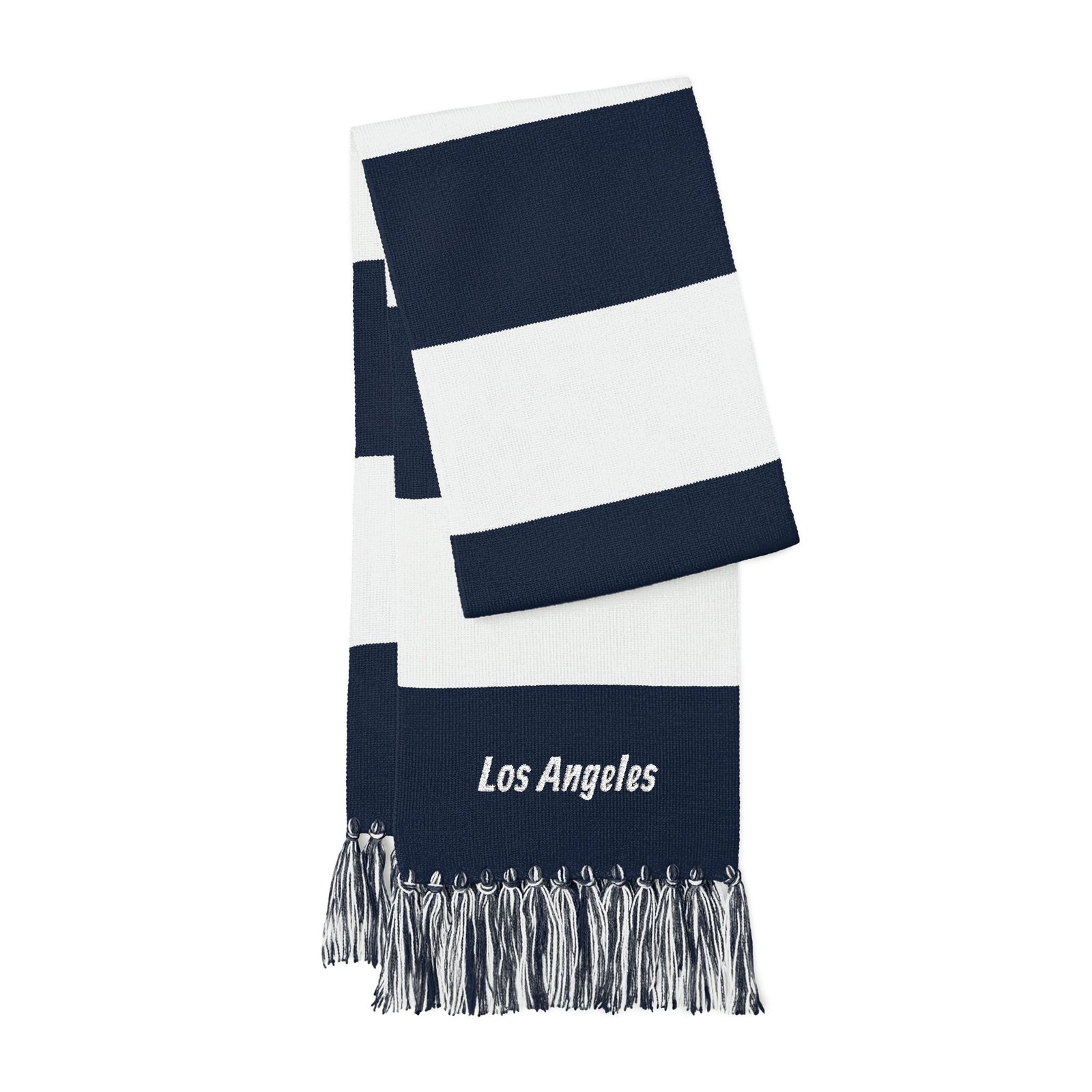 Chunky striped scarf with embroidered city script—this lightweight acrylic knit wraps warmth and neighborhood pride into one easy layer. The broad blue or forest-green bands sit against bright white for a crisp, sporty look, while the fringed ends add movement and texture. At 61″ long and 8″ wide, it tucks into coats, drapes over shoulders, or loops once for a clean, casual finish. Soft to the touch and simple to style, it carries a quiet, everyday charm that sings on morning walks, commuter days, and weekend sidelines.