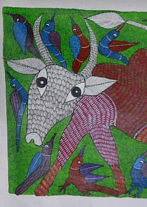 The word ‘Gond’ comes from the Dravidian expression ‘Kond’ which means ‘green mountain’. Gond painting is a famous folk art of the Gond tribal community of central India. It is a form of painting from folk and tribal art that is practiced by one of the largest tribes in India – the Gond – who are predominantly from Madhya Pradesh, but can also be found in pockets of Andhra Pradesh, Maharashtra, Chhattisgarh, and Odisha. The history of the Gond people dates nearly 1400 years. Blended with mystery, pattern, blend of colours and humour, these art pieces depict a modern psyche.