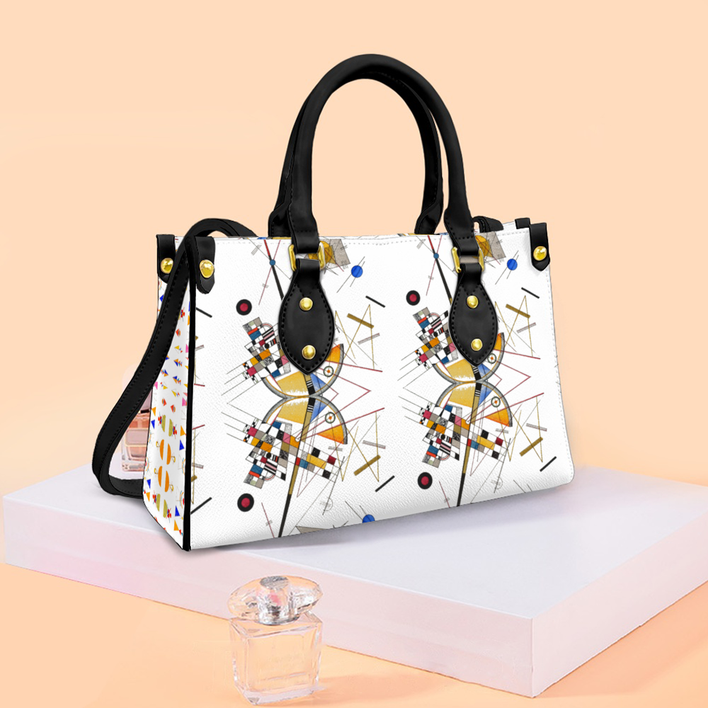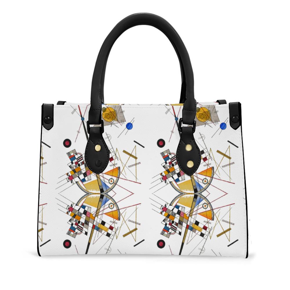 Crafted from high-quality faux leather, this handbag combines durability with a luxurious feel. The standout feature, however, is its stunning design inspired by the abstract art of Wassily Kandinsky, whose bold shapes and intricate color combinations radiate creativity. Owning this bag means carrying a piece of art wherever you go, allowing you to express your personality through a perfect conversation piece.