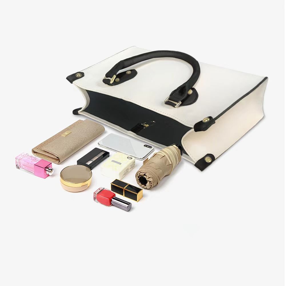 Discover the perfect blend of fashion and fine art with our faux leather handbag, featuring the timeless 'Compositions' designs by Wassily Kandinsky. Whether you’re heading to work, a weekend outing, or a social event, this bag offers sophistication and functionality while showcasing a unique artistic flair. Make a statement with an accessory that's as stylish as it is meaningful.