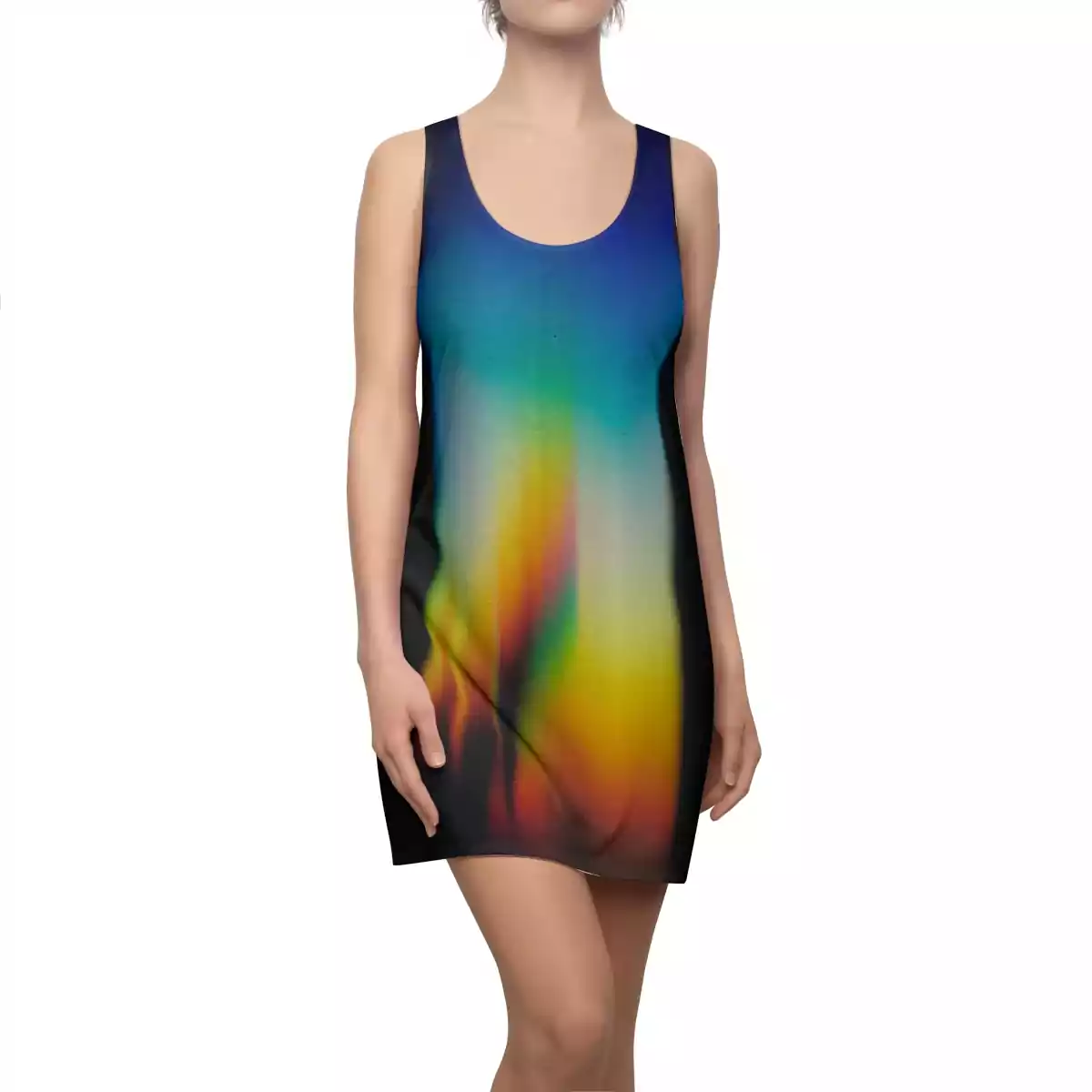 A feminine and stylish, yet really comfortable dress. This high quality AOP racerback dress is appealing from every angle. Inspired by the freedom of creativity, it will instantly become everyone’s all time favorite.