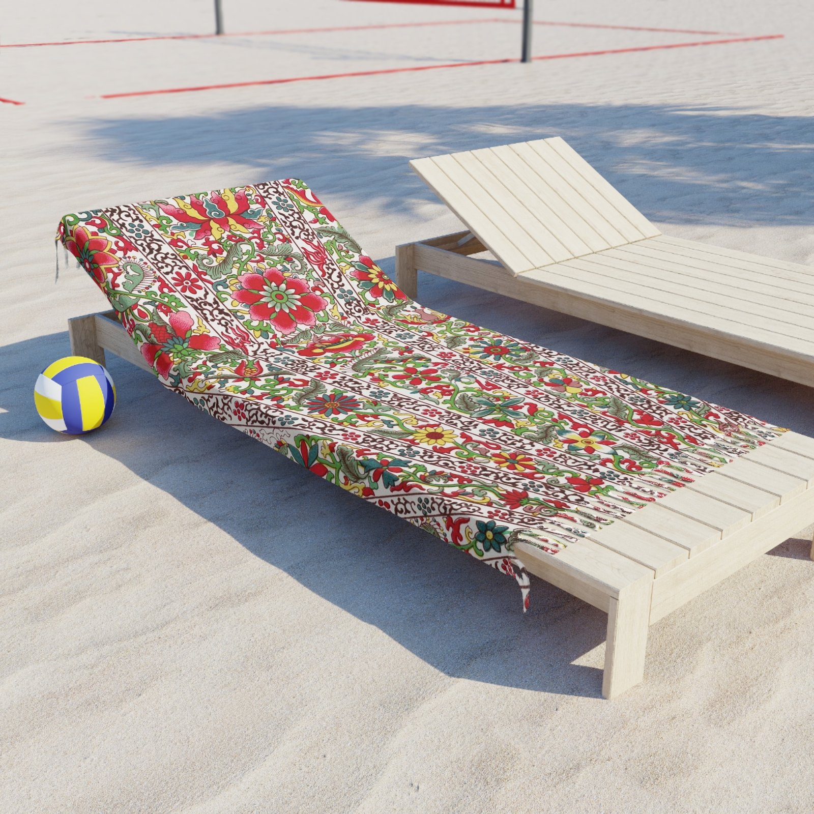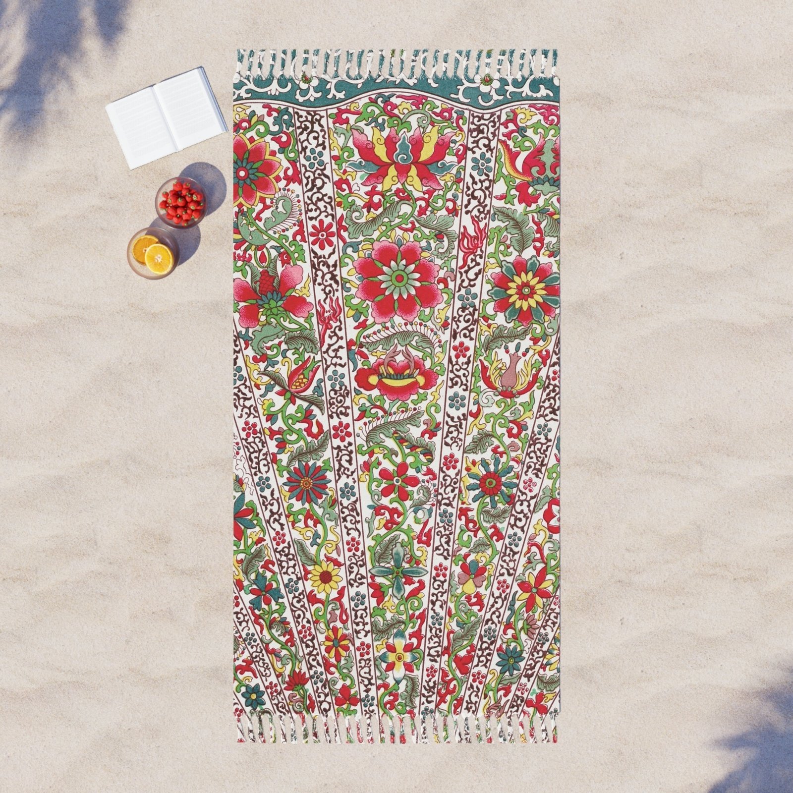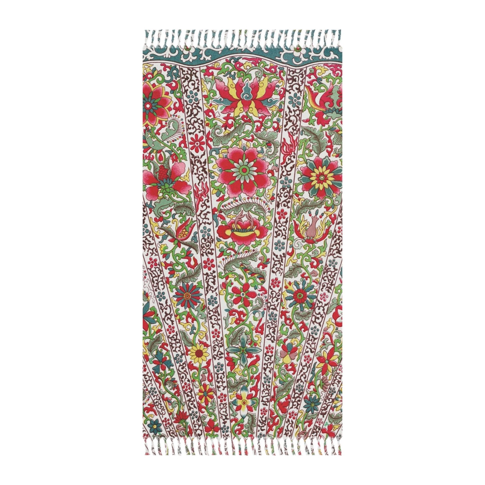 Soft, airy and full of wanderlust — this boho beach cloth brings a vintage-inspired floral tapestry to sand, boardwalks, and impromptu picnics. Light and quick-drying, it slips into a tote or roll-up bag and becomes a towel, sarong, picnic blanket, or lightweight throw for cooler evenings. Knotted tassels trim the edges, adding handcrafted charm and movement when the ocean breeze catches it. Lay it down, wrap up in it, or drape it over a chair — it’s the kind of piece that turns small moments into little rituals of color and calm.