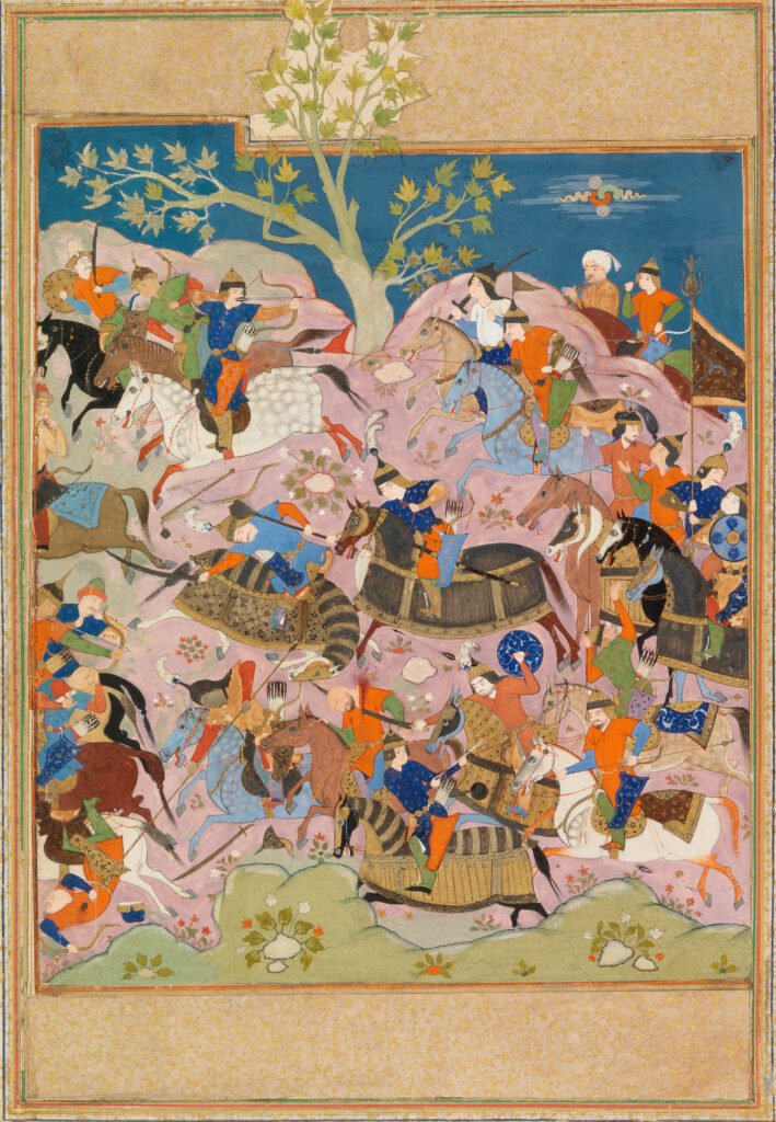 Unidentified artist. A Battle Scene, c. 1550, Opaque paint and gold on paper. The Barnes Foundation