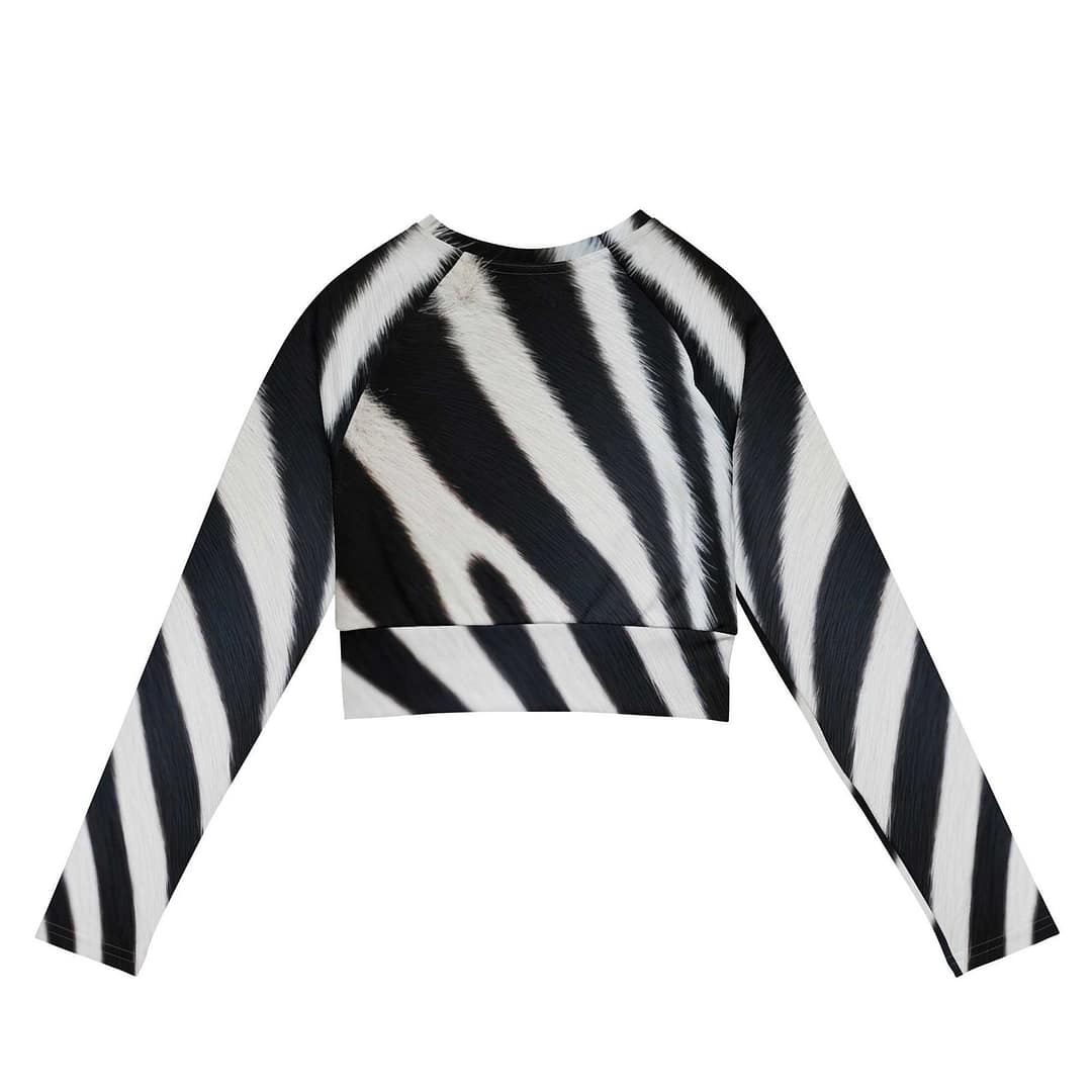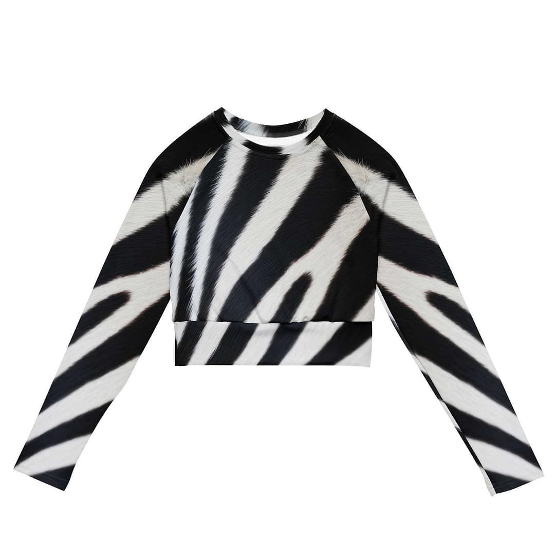 This long-sleeve crop top is made of recycled polyester and elastane, making it an eco-friendly choice for swimming, sports, or athleisure outfits. The crop top has a tear-away care label and a wide, double-layered waistline band for a comfortable fit.