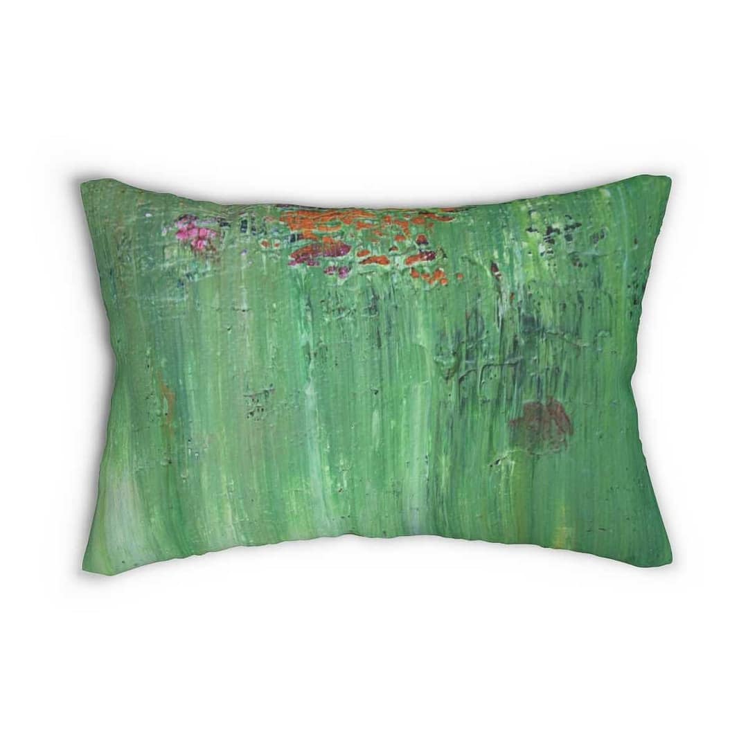 Add this beautiful spun-polyester lumbar pillow to your home decor pieces today. It comes with a stuffing pillow included. The casing is made of a spun polyester fabric that is inherently mildew and water-resistant. You can place your design on both sides or have a different design on each side. It has a hidden beige zipper to maintain a finished and stylish look.