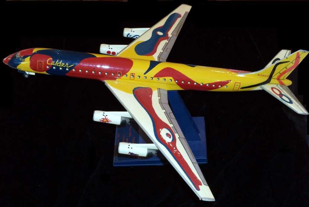 In December 1972, American Modern Master Alexander Calder was commissioned by Braniff to paint an aircraft. Calder was introduced to Harding Lawrence by veteran advertising executive George Stanley Gordon, who would eventually take over Braniff's advertising account.[21] Calder's contribution was a Douglas DC-8 known simply as "Flying Colors of South America." In 1975 it was showcased at the Paris Air Show in Paris, France. Its designs reflected the bright colors and simple designs of South America and Latin America, and was used mainly on South American flights.