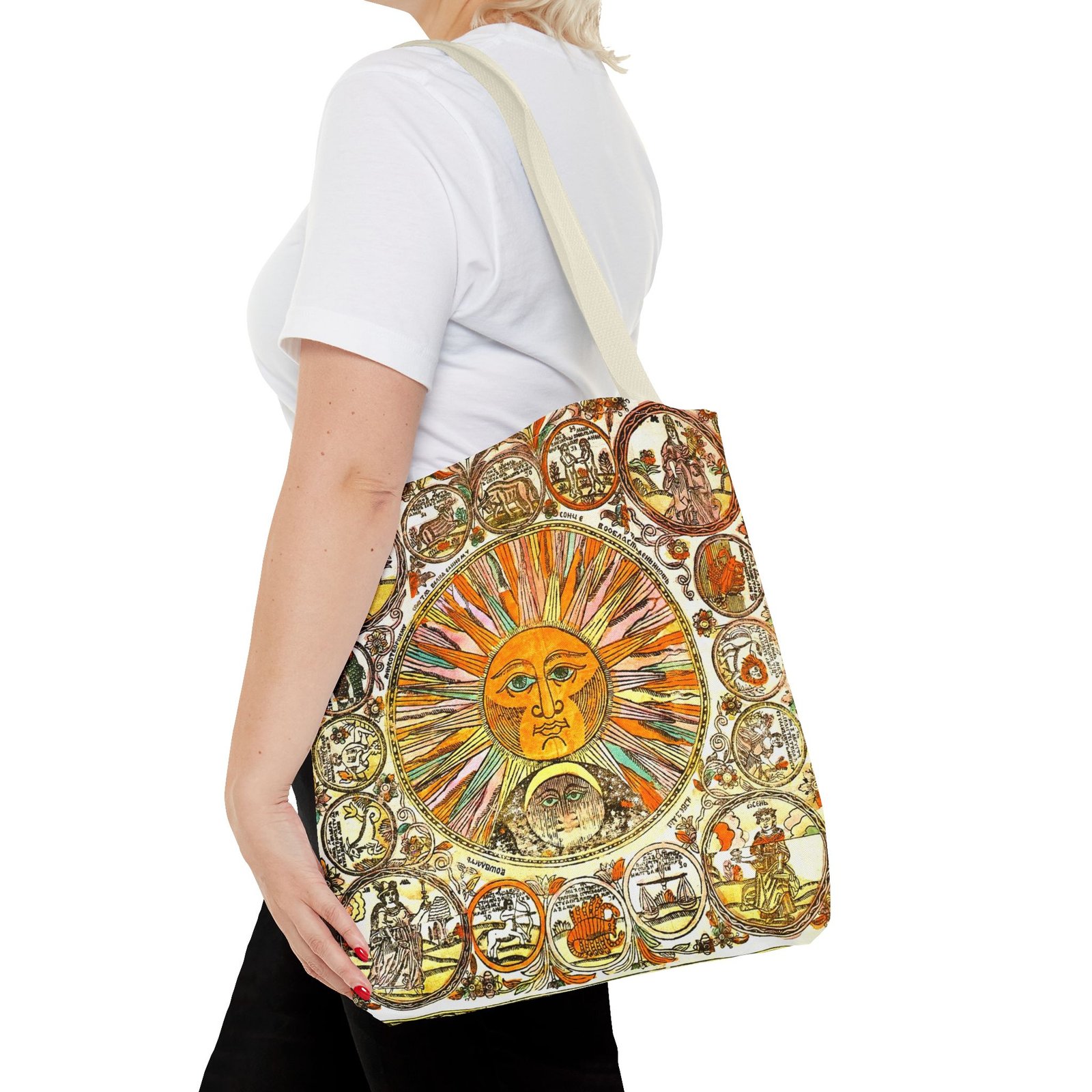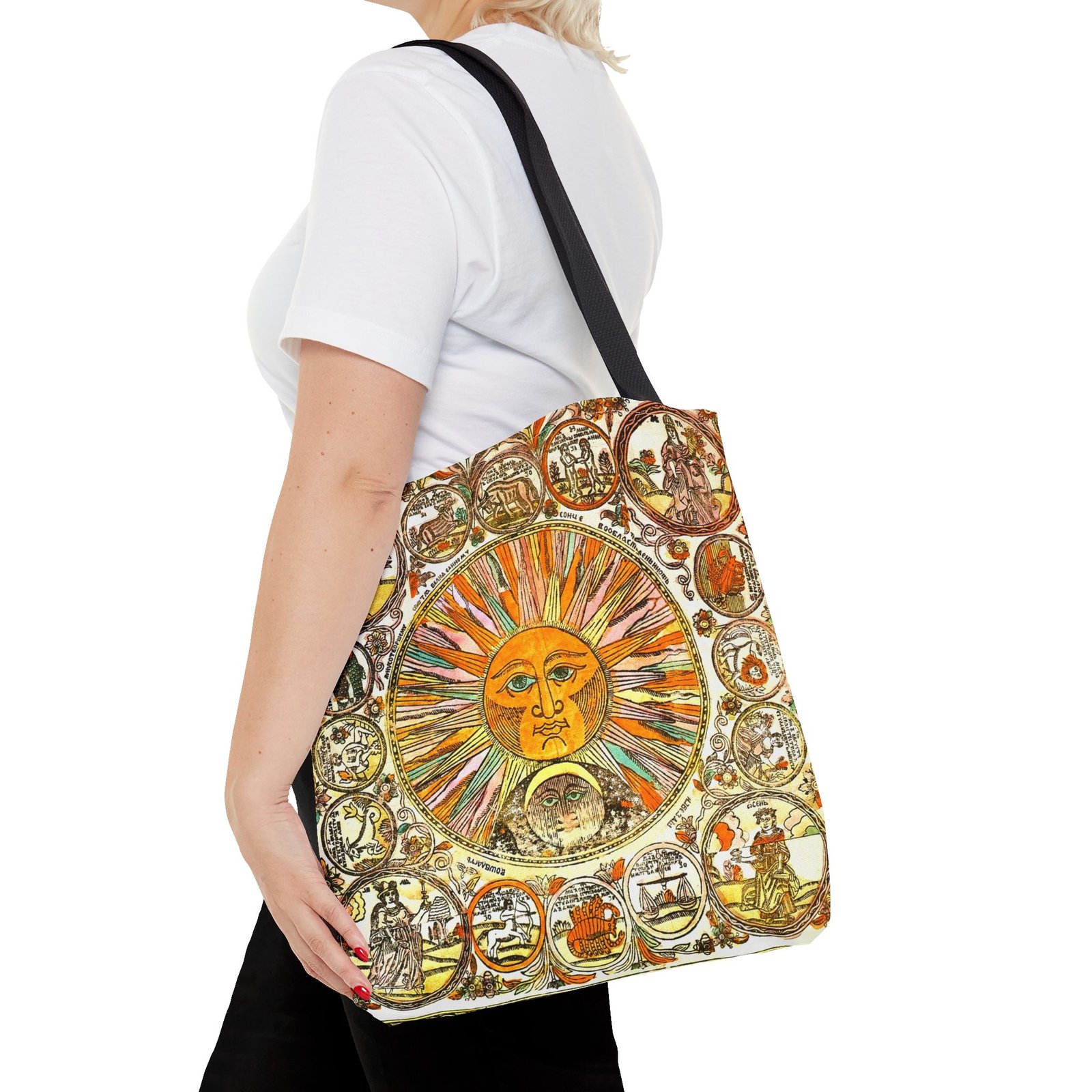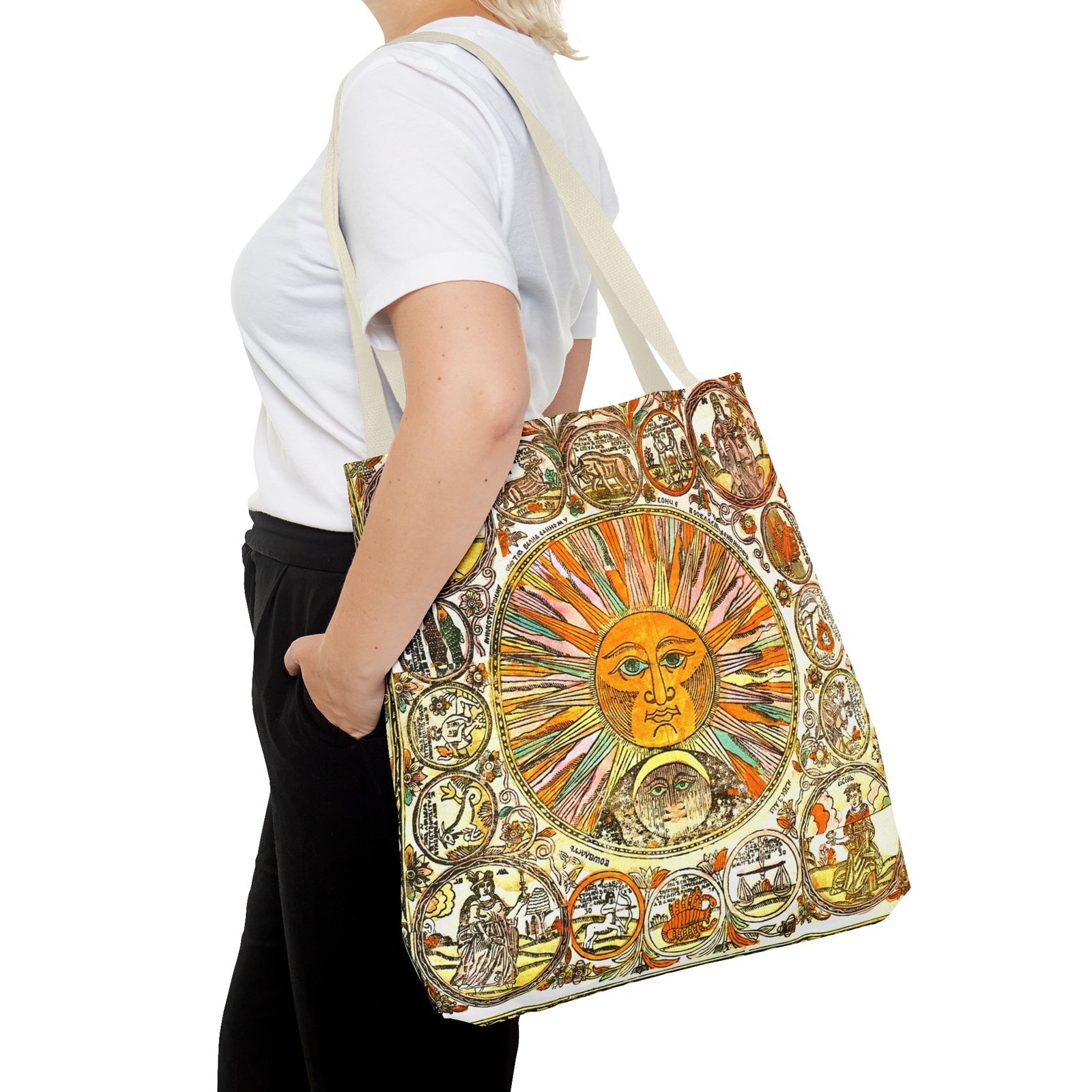 Sunburst Tarot Art Tote Bag — Vintage Celestial Sun & Moon