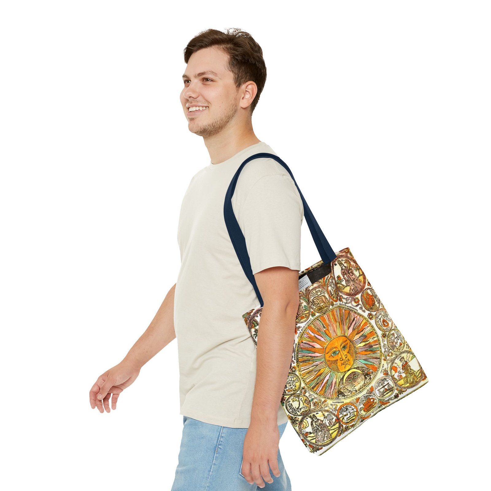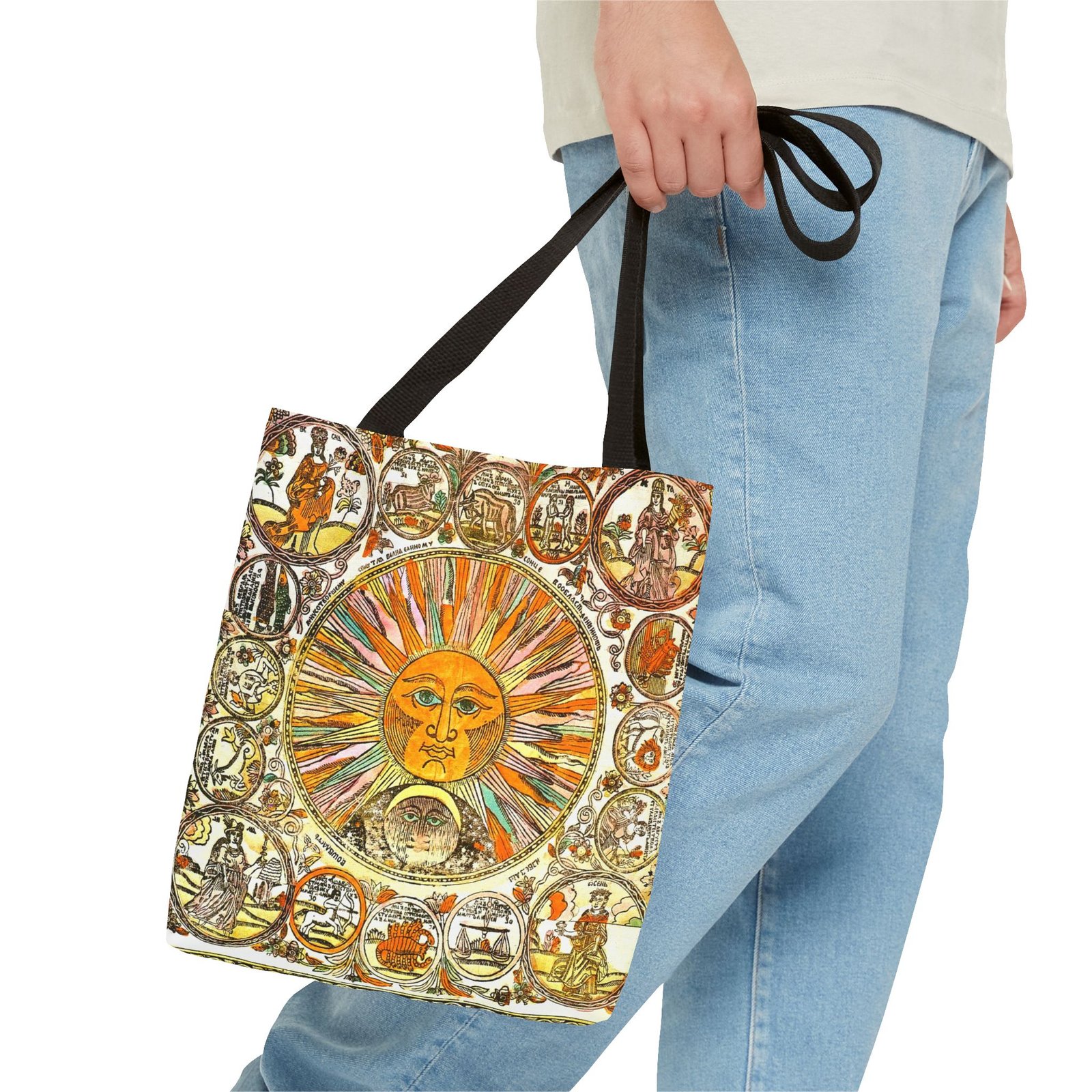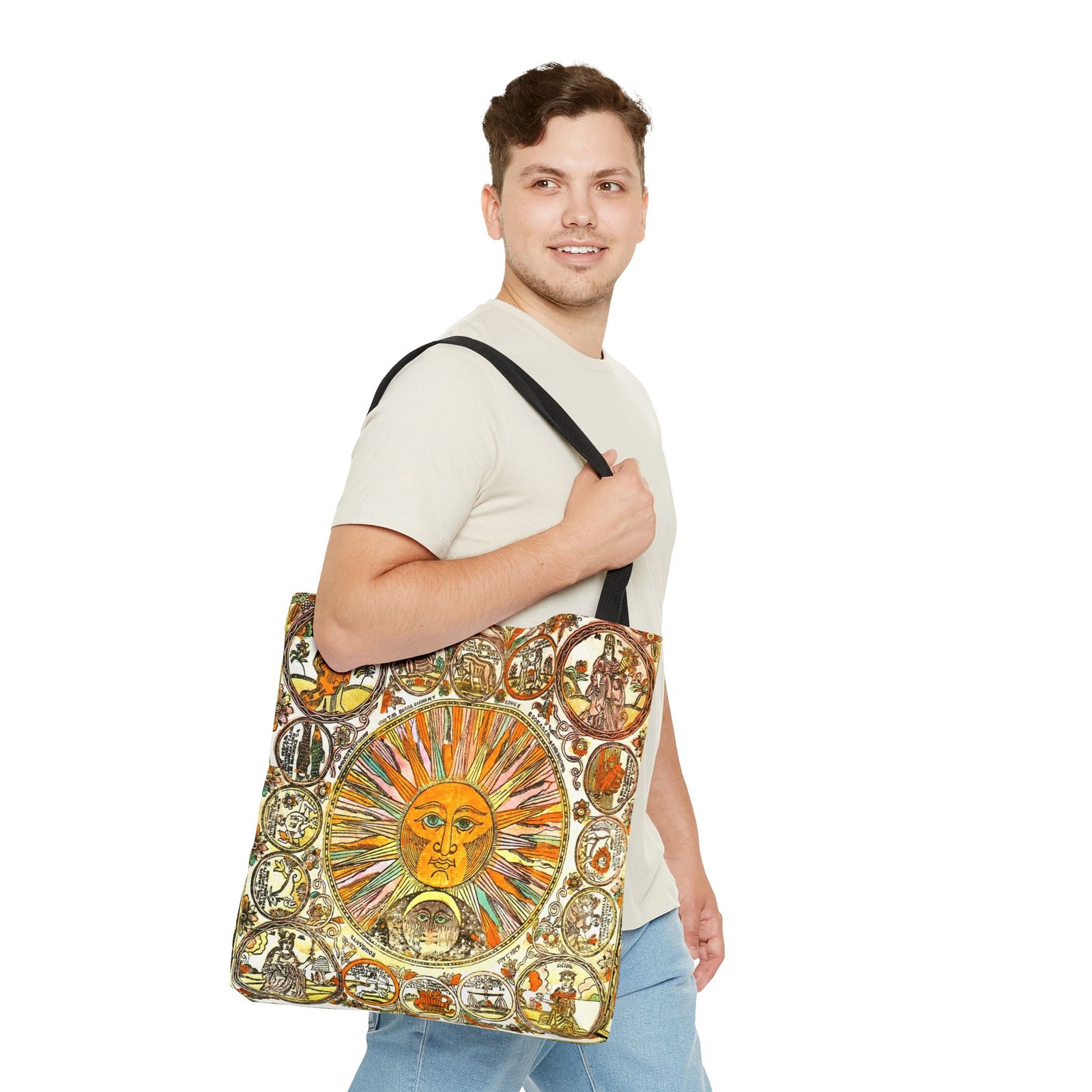 Sunburst Tarot Art Tote Bag — Vintage Celestial Sun & Moon