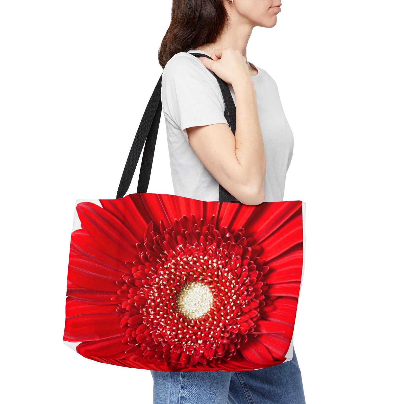Introducing the perfect Weekender Tote Bag for your next getaway! This vibrant bag is crafted from 100% spun polyester, ensuring it maintains its shape without wrinkling, making it ideal for travel. The striking design features a beautiful, bold flower that brings a touch of nature’s beauty wherever you go. Its spacious interior, measuring 24″ x 13″, is perfect for packing all your essentials for a weekend retreat or a day at the beach.