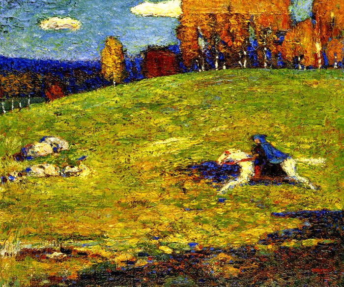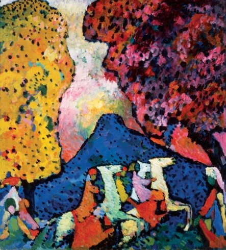 Wassily Kandinsky was a Russian-born painter and art theorist who is widely considered a pioneer of abstract art, known for his spiritual approach to painting and his belief in art’s ability to evoke emotion and inner necessity. He transitioned from a career in law to art in his thirties, moving to Munich to study painting and eventually co-founding the Der Blaue Reiter (The Blue Rider) group with Franz Marc. Kandinsky’s abstract works, which use color, line, and form to convey meaning rather than represent the visible world, were inspired by his love of music and his possible synesthesia (a condition where senses are mixed).