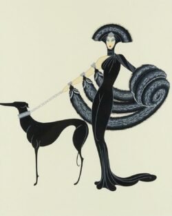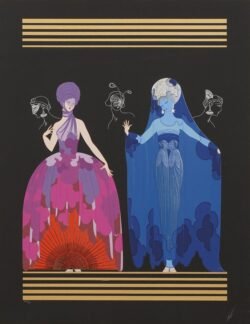 Erté moved to Paris in 1910, disobeying his father’s wishes for him to become a naval officer. In 1915, he secured a contract with Harper’s Bazaar magazine, producing numerous illustrations and other media. Today, Erté’s work can be found in the collections of the Metropolitan Museum of Art in New York, the Los Angeles County Museum of Art, and the Victoria and Albert Museum in London. He died on April 21, 1990 in Paris, France.