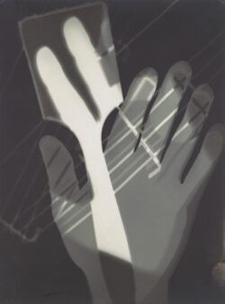 ‘The notion of experimentation was critical to his practice,’ continues Eliel, describing how he went on to invent the photogram — a photograph made without a camera. To create a photogram, Moholy-Nagy laid objects on light-sensitive paper and exposed them to light, with a longer exposure creating a brighter image.