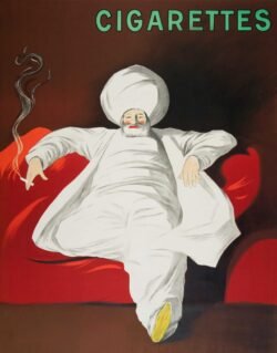 Leonetto Cappiello (9 April 1875 – 2 February 1942) was an Italian and French poster art designer and painter, who mainly lived and worked in Paris. He is now often called ‘the father of modern advertising’ because of his innovation in poster design. The early advertising poster was characterized by a painterly quality as evidenced by early poster artists Jules ChéretAlfred Choubrac and Hugo D’Alesi. Cappiello, like other young artists, worked in a way that was almost the opposite of his predecessors. He was the first poster artist to use bold figures popping out of black backgrounds, a startling contrast to posters’ early norm.