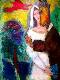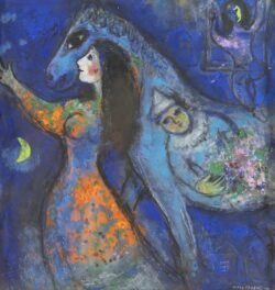 Visiting Russia in 1914, the artist was prevented from returning to Paris due to the outbreak of World War I until 1926. In addition to his paintings, Chagall was also noted for his vibrant works in stained glass and lithography. Forced to flee Paris during World War II, Chagall lived in the United States and traveled through to Israel before returning to France in 1948. The artist died in Saint-Paul-de-Vence, France on March 28, 1985. Today, his works are held in the collections of The Museum of Modern Art in New York, the Tate Gallery in London, the Tel Aviv Museum of Art, and the Albertina in Vienna, among others.