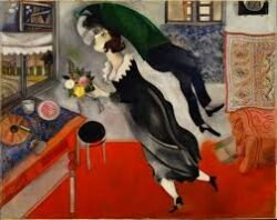 Marc Chagall was a Belarusian-born French artist whose work anticipated the dream-like imagery of Surrealism. Over the course of his career, Chagall developed the poetic, amorphous, and deeply personal visual language evident in paintings like I and the Village (1911). “When I am finishing a picture, I hold some God-made object up to it—a rock, a flower, the branch of a tree or my hand as a final test,” he said. “If the painting stands up beside a thing man cannot make, the painting is authentic. If there’s a clash between the two, it’s bad art.”
