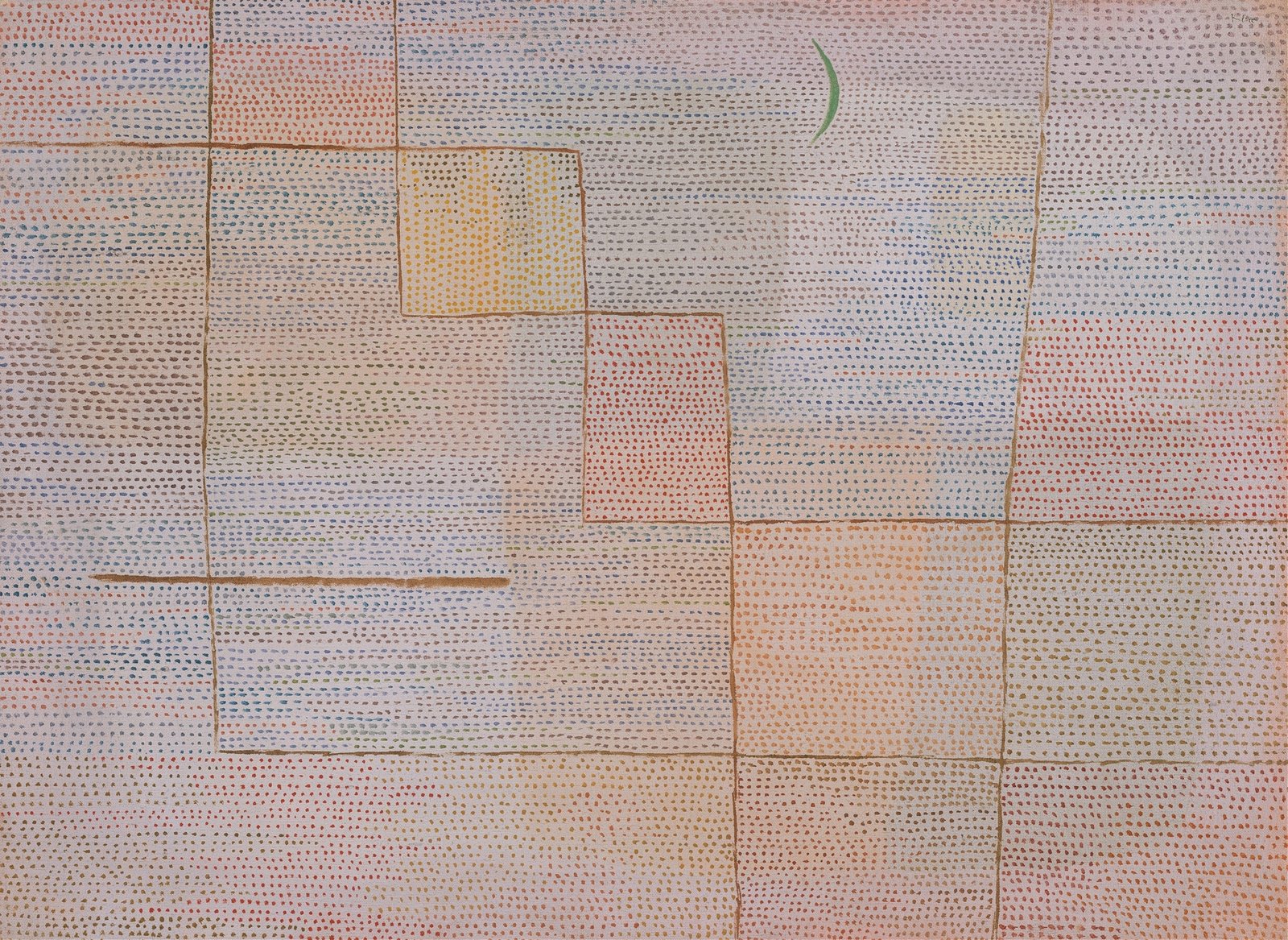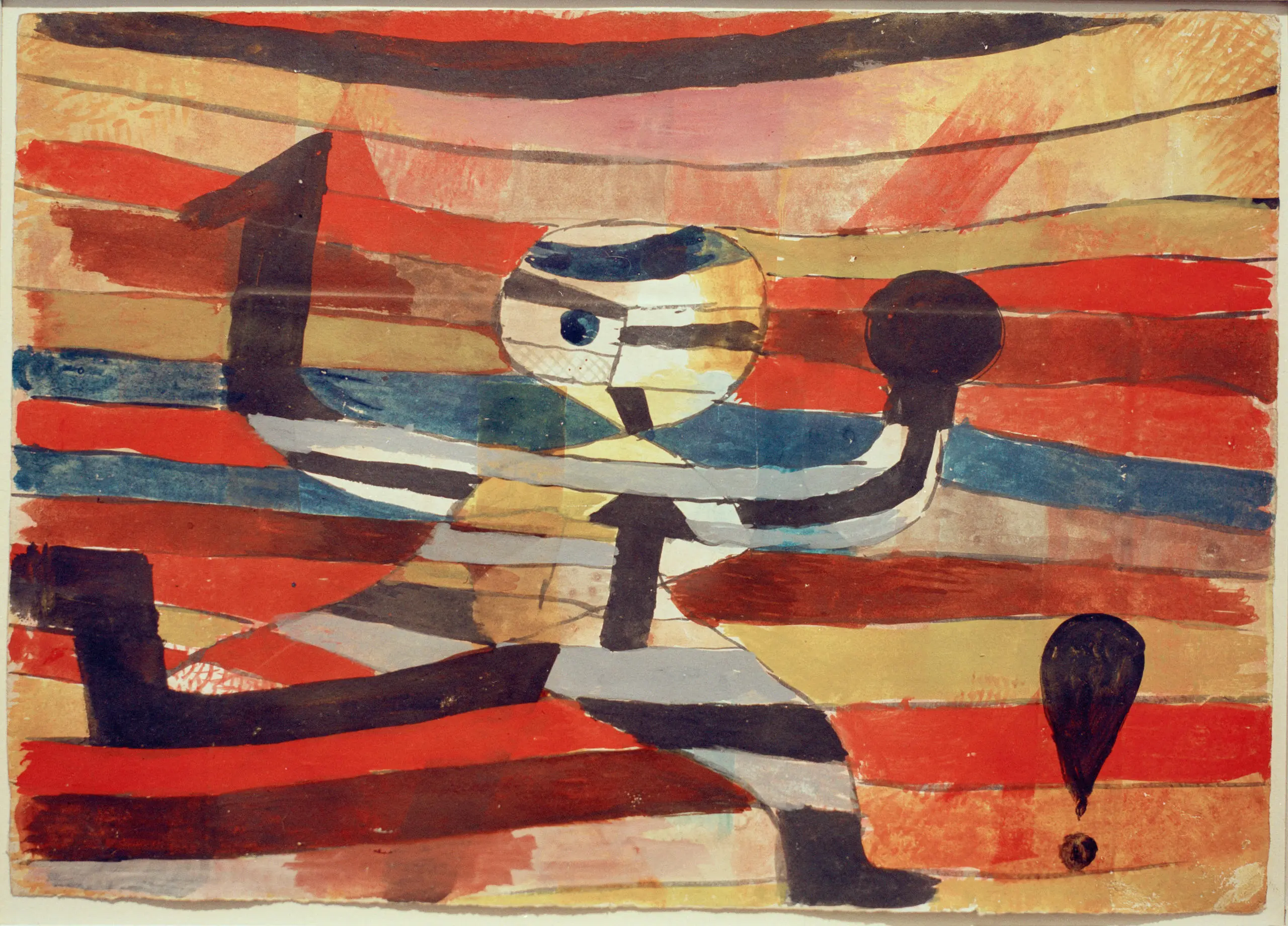 Klee is known for his simple stick figures, suspended fish, moon faces, eyes, arrows, and quilts of color, which he orchestrated into fantastic and childlike yet deeply meditative works.