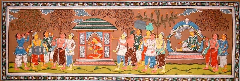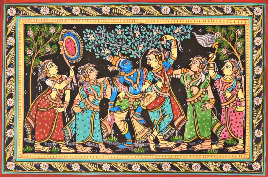 Pattachitra is a traditional painting of Odisha, India. These paintings are based on Hindu mythology and specially inspired by Jagannath and Vaishnava sect. All colours used in the Paintings are natural and paintings are made fully old traditional way by Chitrakaras that is Odiya Painter. Pattachitra style of painting is one of the oldest and most popular art forms of Odisha. The name Pattachitra has evolved from the Sanskrit words patta, meaning canvas, and chitra, meaning picture. Pattachitra is thus a painting done on canvas, and is manifested by rich colourful application, creative motifs, and designs, and portrayal of simple themes, mostly mythological in depiction. The traditions of pattachitra paintings are more than thousand years old.