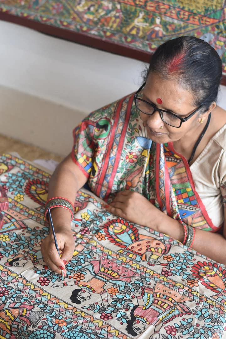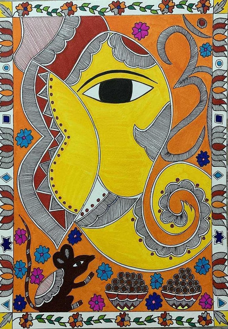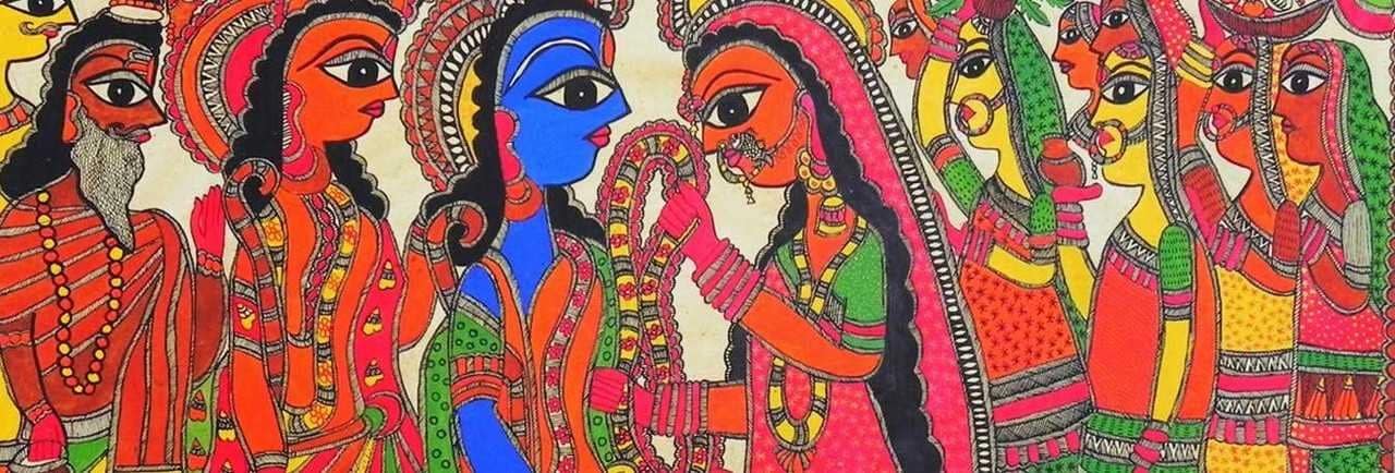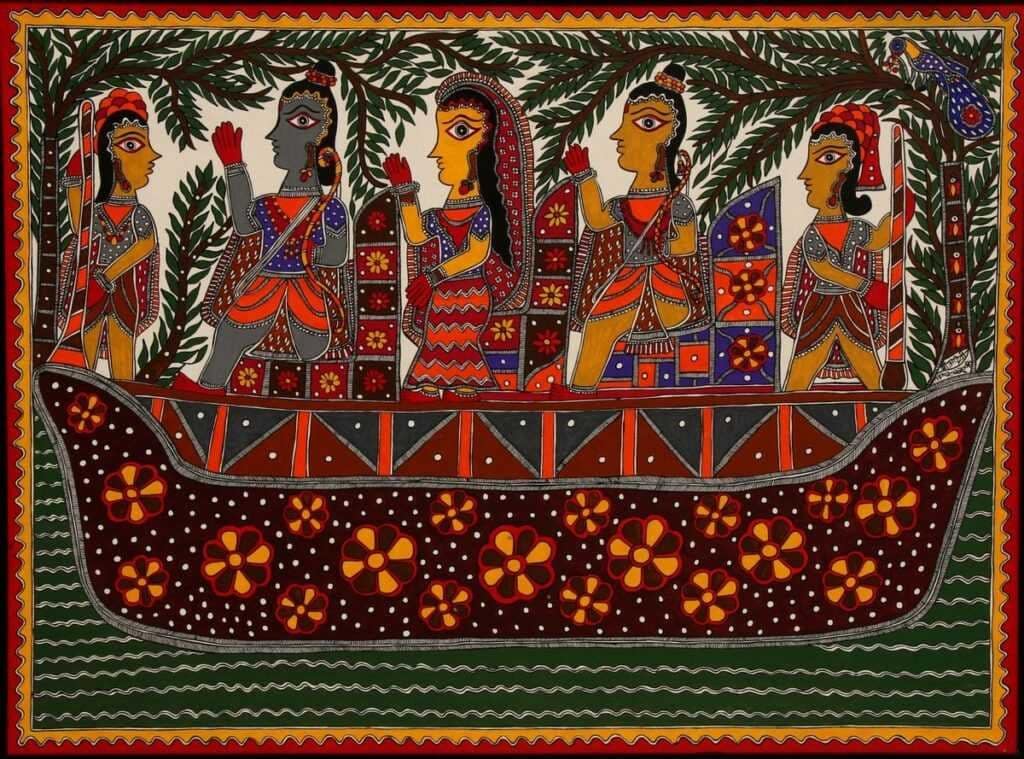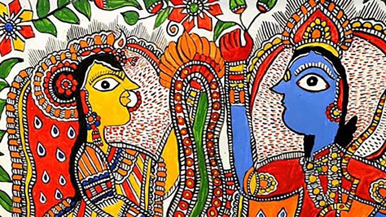 Madhubani paintings were first created at Mithila, the birthplace of Hindu goddess Sita. When Sita and her husband Prince Rama were to be married, King Janak, father of Sita, asked for paintings to capture moments of the marriage. Madhubani painting (or Mithila painting) was traditionally created by the women of various communities in the Mithila region of the Indian subcontinents. It originated from Madhubani district of the Mithila region of Bihar. Madhubani is also a major export center of these paintings.[7] This painting as a form of wall art was practiced widely throughout the region; the more recent development of painting on paper and canvas mainly originated among the villages around Madhubani, and it is these latter developments that led to the term “Madhubani art” being used alongside “Mithila Painting.”[8]